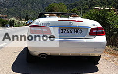 Men inden tankerne går i retning af dårlige fjedre i taxier med wunderbaum foran varmeapparatet, så lad os skrue tiden tilbage til juli måned 2011. Her var familien fløjet til solskinsøen Mallorca, mens bilerne stod hjemme i garagen. Men en rigtig bilentusiast lod sig lokke til en afstikker fra daselivet ved poolen og den nærvedliggende strandbar til fordel for en lille køretur på øen. Fruen insisterede på luftforandring og lod sig ikke mærke med at nøglerne fra biludlejningsfirmaet ikke var til en lille Seat, men derimod en hvid Mercedes cabriolet. Der var jo tilbud på åbne mercedes´er og hvilken kvinde forstår ikke et tilbud?