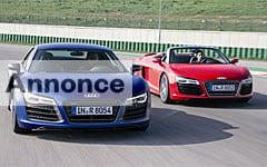 Alle modeller har nu komplette LED-forlygter som standard. Baglygterne er også nye med innovativt, dynamisk blinklys. Den nye, kraftfulde R8 V10 plus med 550 hk sprinter fra 0-100 km/t på 3,5 sekunder. Og ikke mindst takket været en  ultra-letvægtskonstruktion vejer topmodellen med manuel gearkasse blot 1.570 kg.